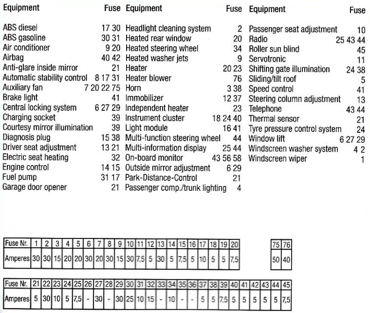 X254-4 | Fuse 60 | 30A | Central locking, rear windows, outside mirrors |