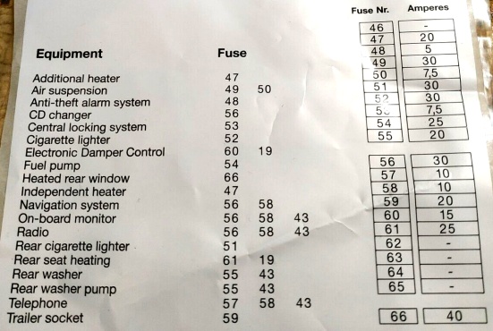X254-4 | Fuse 27 | 30A | Central locking and rear windows |