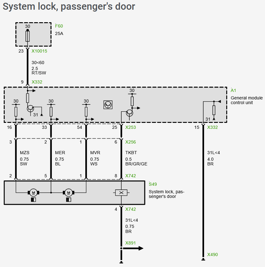 MFBZ - Window Motor, Front Right, Close (M23-1) |