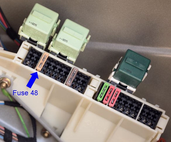 Fuse 48, 5 Amp was missing. Installed fuse and now it works. Picture |